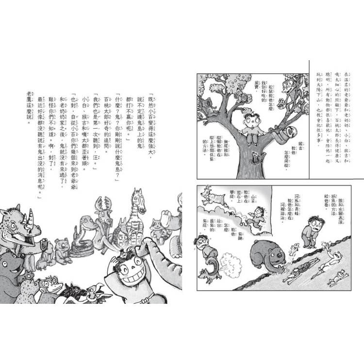在出發之前,百桃太郎找了嘰太、猴吉、小白一起去問其他動物要不要一起去打鬼。