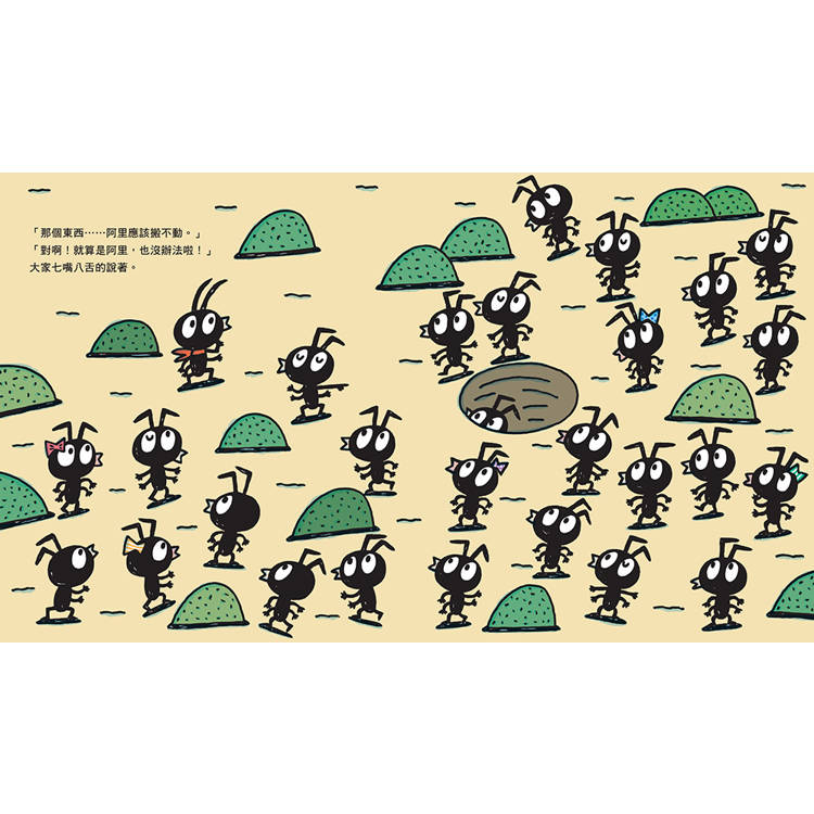 究竟是什麼樣的「巨大」物品,竟連阿里都舉白旗投降?宮西達也透過小螞蟻忙碌有趣的日常,帶來活潑又爆笑的情節。