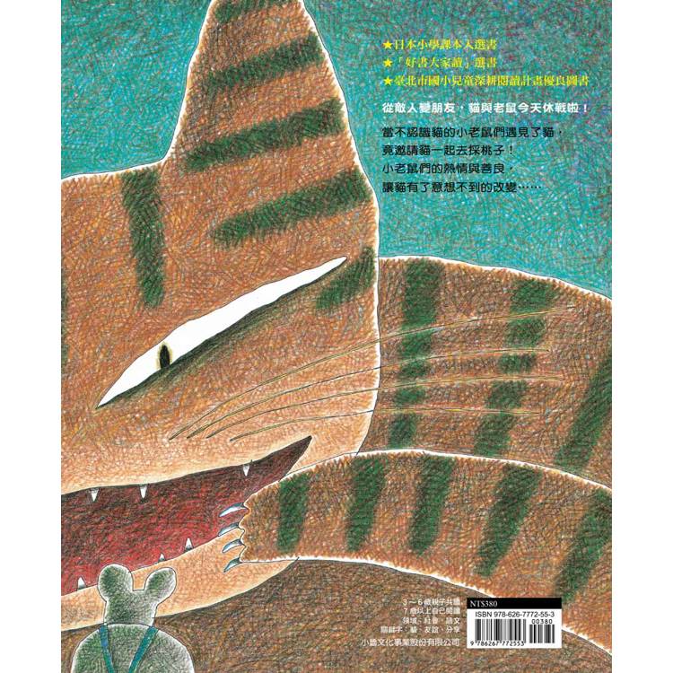 當不認識貓的小老鼠們遇見了貓,竟邀請貓一起去採桃子!小老鼠們的熱情與善良,讓貓有了意想不到的改變……