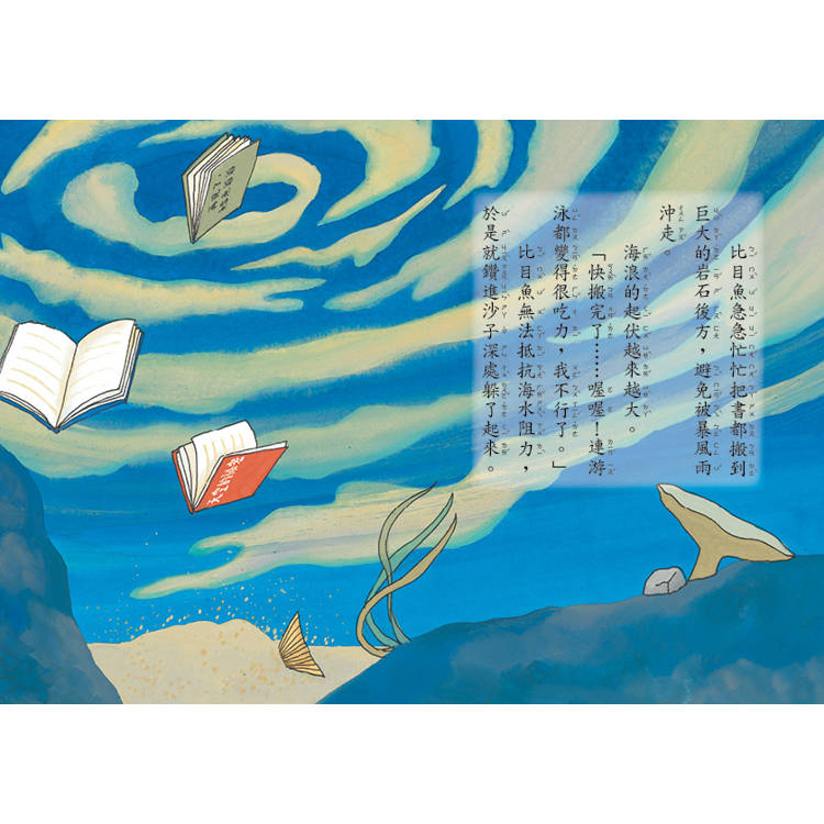 故事裡的海洋生物們,有的守護書本,有的修補故事;有的畫出天空,有的傳遞感動;有誤會,也有真相;有失落,也有新的發現。或許成長也像一場暴風雨——會有些混亂,會聽見各種聲音,但只要願意閱讀、願意一起想辦法,每一次波濤,都能化為成長的力量。