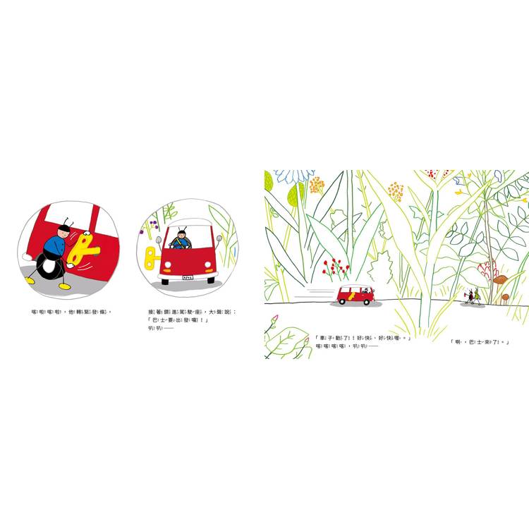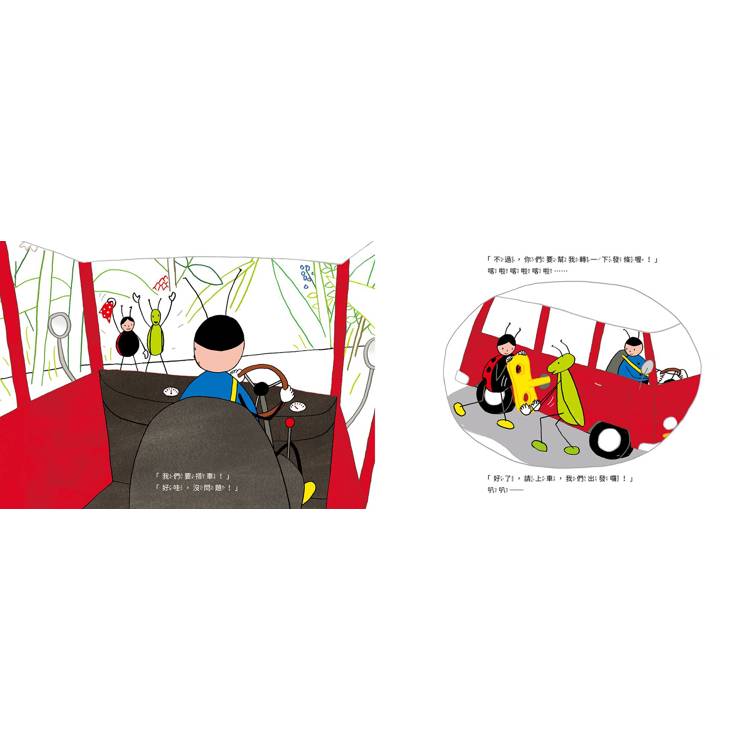 想像力豐富的圖像與無厘頭展開的故事內容,讓孩子沉浸於昆蟲與動物的小小世界中,隨著巴士展開未知旅途。旅途中甚至發揮了不同動物的專長,讓人不禁捧腹大笑。無法預料的情節安排饒富創意。