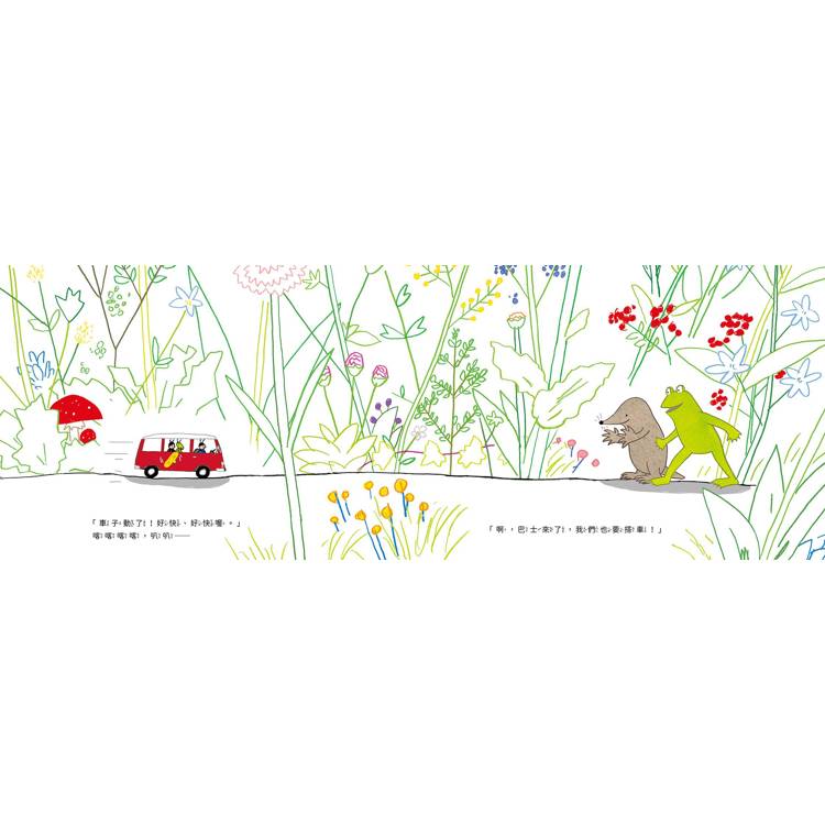「一輛小小的玩具發條巴士。看到鼴鼠和青蛙硬擠上車,我不禁笑出來了。接下來發生的一系列離奇古怪、出人意料的事情令人興奮不已。出人意料的結局也很棒。這是一本充滿樂趣的圖畫書,真正激發了孩子們天馬行空的想像。」by あんじゅじゅさん