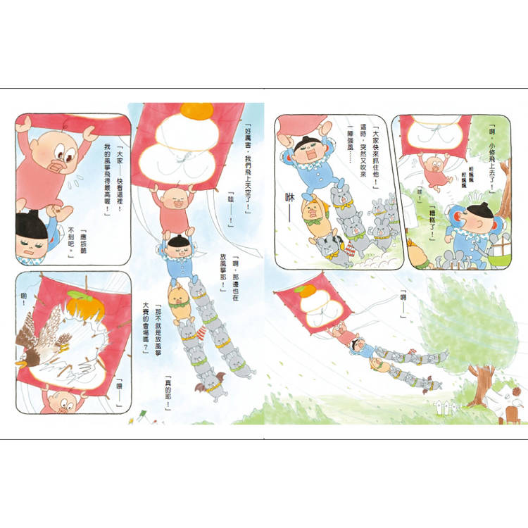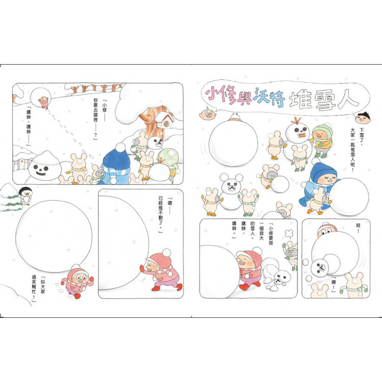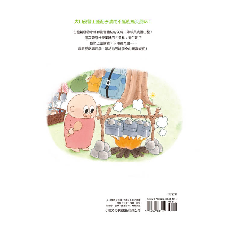 貪吃的小修和親切的沃特喜歡到處玩耍、品嘗美食、體驗不一樣的新事物。今天,他們又發生了哪些「美味」的事情呢?在海邊撿到超大貝殼、上山露營卻差點被小熊吃掉……還有好多有趣的事,大家快來一起玩吧!本書共收錄五則可愛搞怪的故事:〈海邊撿貝殼〉、〈露營美食團〉、〈七夕許願〉、〈堆雪人〉、〈放風箏大賽〉,和小修、沃特上山下海,遊玩春夏秋冬,一起吃遍四季,補充滿滿能量!