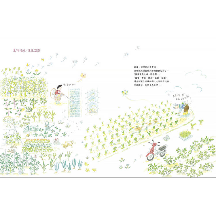  每個看似平凡的細節,其實蘊藏許多人生智慧。孩子可以認出書中好多動植物,我也很高興透過這本書,可以把長輩的農家記憶分享給下一代。