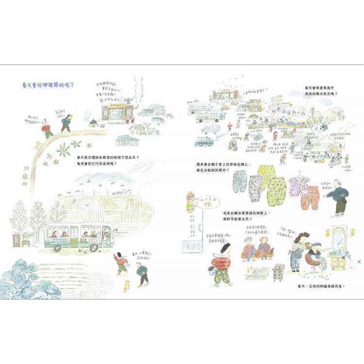  農人從春天一路忙到秋天,圖畫卻有一股獨特的靜謐感。作者細膩地描繪集市、公車和理髮院的招牌,勾起了我童年的美好時光,讓我一邊讀,一邊忍不住落淚。