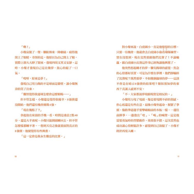 對小燦來說,白虎國小一直是他憧憬的目標。只要一有機會,他就會去白虎國小偷看球隊練習。實在沒想到,現在竟然要跟他們比賽了!不論輸贏,跟白虎國小比賽這件事已經夠讓他興奮了。