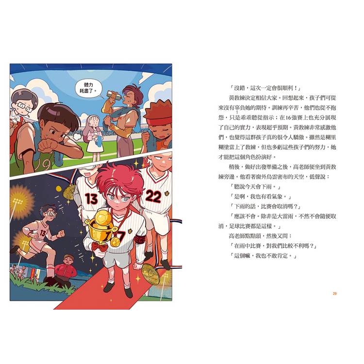 ✏閱讀關鍵字:足球、團隊合作、毅力、勇氣。