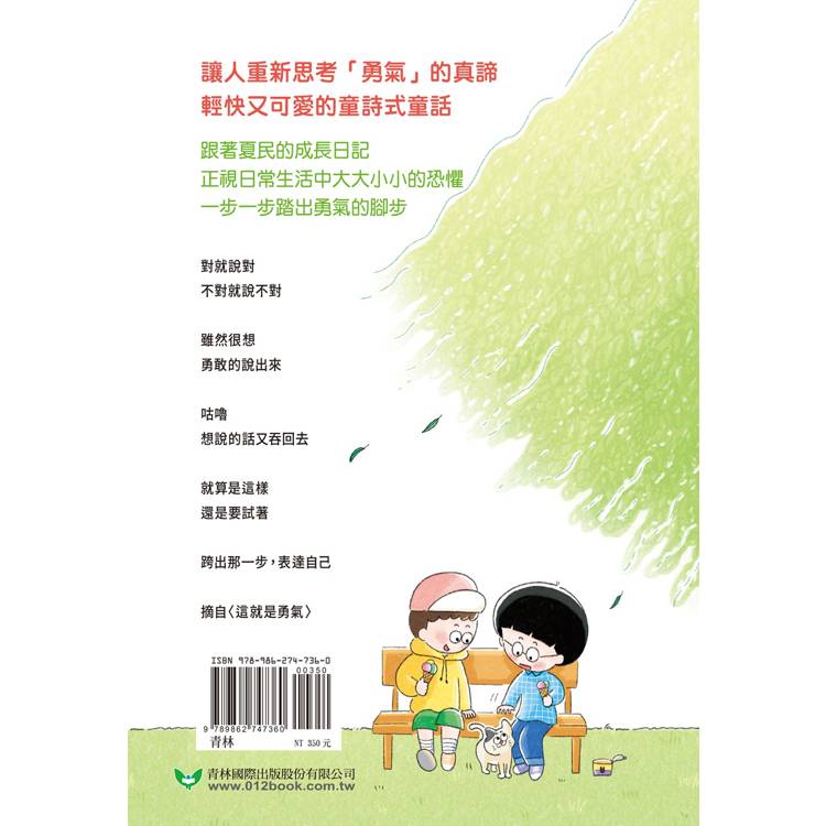 勇氣是什麼?對某些人來說,勇氣是沒有害怕或恐懼的感覺。但這種「把感受關掉」的作法,會不會反而讓我們遠離了勇氣呢?繪本的主角夏民將為我們示範他在成長過程中慢慢探索出來的「真正的勇氣」,不但值得小朋友參考,更值得大人借鏡喔!