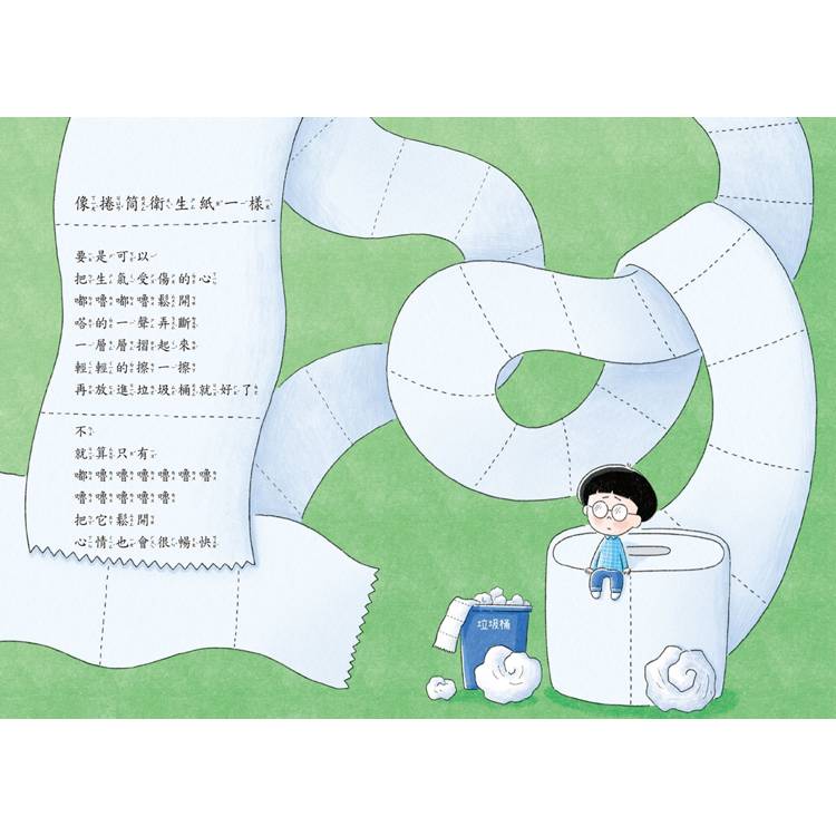 作者用溫柔的比喻陪伴孩子——情緒像衛生紙可以鬆開、說話像種子會開花、彈跳床能讓心飛向外太空——讓勇氣在閱讀裡悄悄長大。