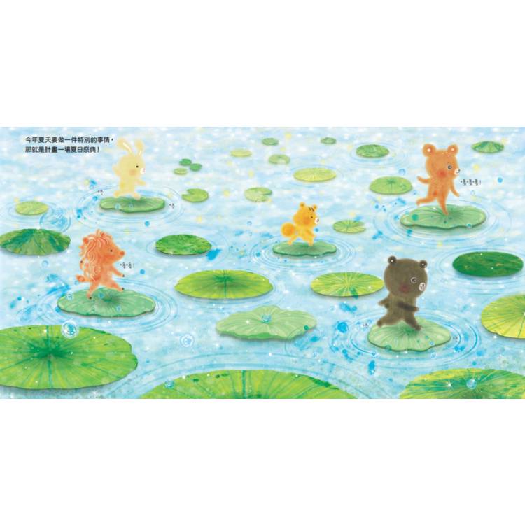 動物朋友們決定在充滿荷葉的池塘