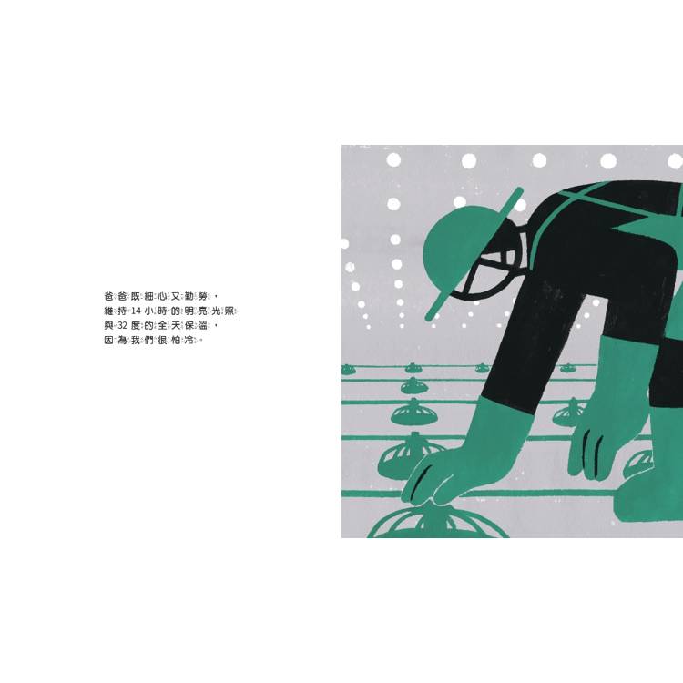 ✦將雞蛋相關知識融入故事,感性與知性兼具。書中以畫面呈現,以註解解釋「沙浴」、「籠飼」、「強迫換羽」、「雞蛋編碼」等概念,將產業現實轉化為孩子也能理解的資訊。