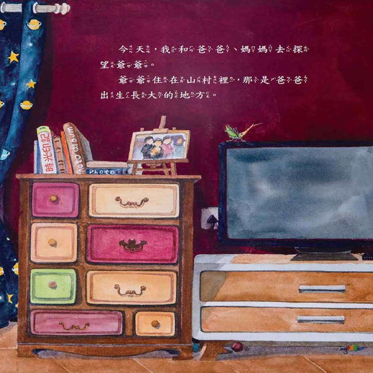 小正和爸爸媽媽要去月影村探望爺爺﹔小正有個任務:說服爺爺搬來跟他們住。當小正到月影村時,他們在村子慢慢走,爺爺和爸爸說著很久的事﹔爸爸說著說著,眼睛裡亮晶晶的,彷彿星星掉進了爸爸的眼睛裡。小正有新任務﹔就是請爸爸媽媽讓爺爺繼續住在月影村。