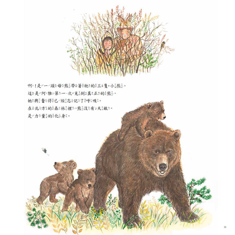 這本繪本「鄂倫春的熊」,繪圖豐富及描述中國北方生活內容的故事,讓小朋友了解中國北方鄂倫春的生活習慣。繪本後面還註明了鄂倫春生活上一些用品的作用,讓小朋友更貼進故事,領略森林之子-鄂倫春人獨特的生活氣息,體悟人與萬物和諧共生的自然理念。故事內容非常好、畫風非常的漂亮,呈現出圖文並茂精彩繪本。