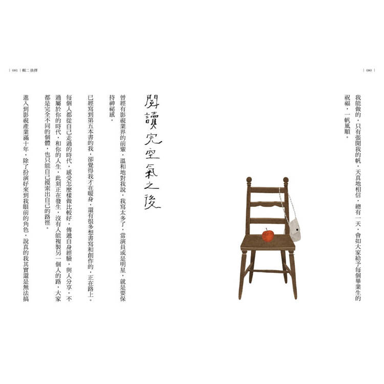 「過往那個有一點輕飄飄的,在人世間穿梭自如、不太留下痕跡的女演員,在這本書出現了一些對抗的配重⋯⋯