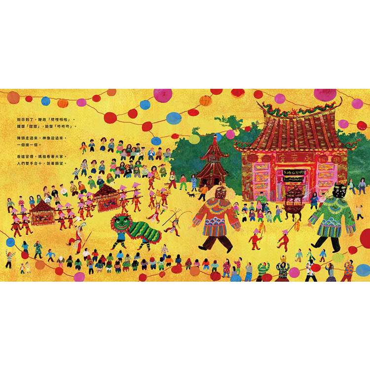 ★「阿力金吉兒的畫總是這麼繽紛、熱鬧與滿溢,充滿驚喜與細節,但是卻無損於當中的平靜。她讓每一個角色都是平等的,都一樣重要,一樣說著故事。這是一本匯聚了童年,更匯聚了台灣文化與情感的作品。」——夏夏(作家)