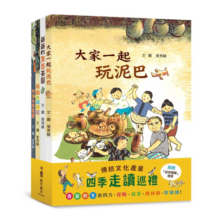 傳統文化產業四季走讀巡禮繪本集: 《大家一起玩泥巴》+《爸爸的友善茶園》+《阿婆的燈籠樹》+《爺爺的玻璃店》(二版)