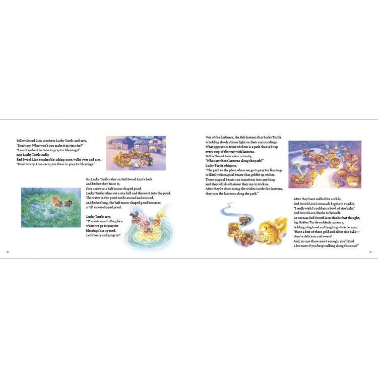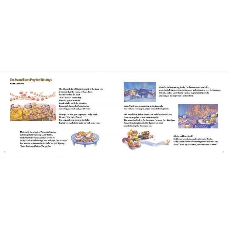 只要掃書上 QR Code,隨時聆聽中英雙語故事,彷彿身歷其境,跟著福龜與劍獅們,一起踏上元宵祈福之旅!