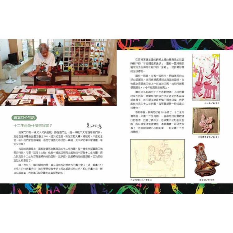 每次我跟太太一起拜訪鄭老師,他會帶著我們從客廳走進他的書房,再走進他有書桌的睡覺房間,每一個空間,他都藏有許多自己的寶貝,有些是自己畫的圖,有些是他收集來特別喜歡的圖或圖畫書,這些都是精品中的精品,每次去,都有新驚喜!而其中有一大部分驚喜,就是十二生肖的圖畫。