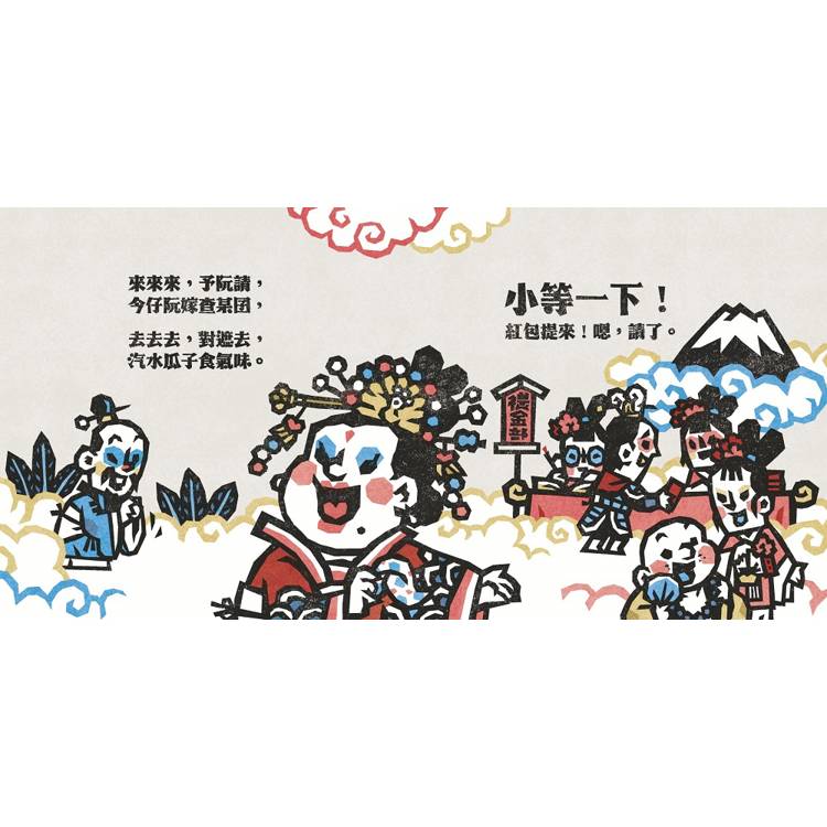 隨書附臺語朗讀QRcode,由專業臺語配音員郭雅瑂獻聲錄製,扮演最活潑大方的「媒人婆」王母娘娘,搭配熱鬧的北管戲曲音樂,有如置身傳統廟會,觀賞一場最喜氣洋洋的婚宴好戲!
