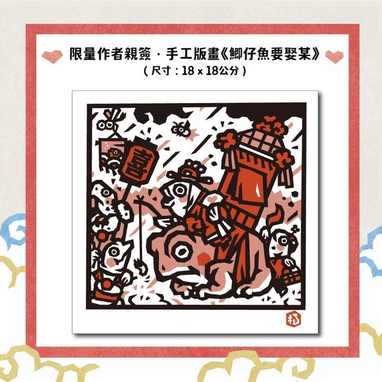 ◆ 限量作者親簽.手工版畫《鯽仔魚要娶某》