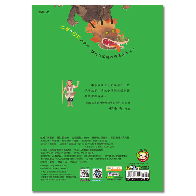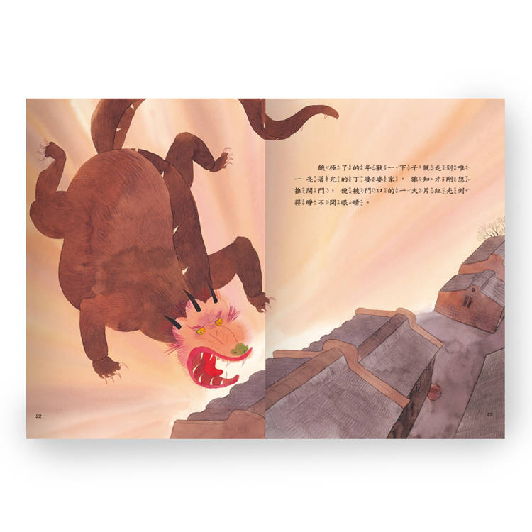 年是一種可怕的怪獸.每到年終,牠便會下山尋找食物.這時,住在山腳下的村民便扶老攜幼的往村外逃.今年,丁婆婆決定留下來幫兒子報仇....本書內容描述過年的有趣傳說.從閱讀中,我們可充分領略中國經典傳說之美,並了解過年的由來.