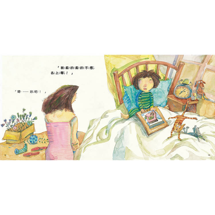 仔細看完內容後,你會發現,露西在想像的同時,似乎已經隨著平常的時間換好衣服、吃完早餐……所以,露西今天到底有沒有去上學呢?