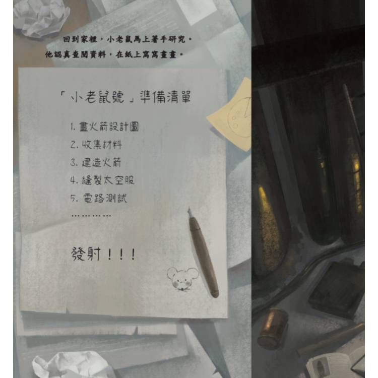 在現實生活中,我們或許會像小老鼠一樣渴望追尋夢幻的「乳酪」,甚至夢想著飛向心中的那座「乳酪山」。但很少會有人相信,用撿來的零件拼湊起來的小火箭,真的能帶我們「飛向宇宙」。