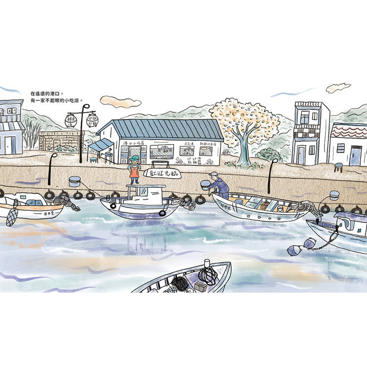翻開這本繪本,心中就浮起了我最想念的海鮮粥的味道:一間簡單的店家,親切的老闆專心烹調料理,時不時與客人聊上幾句……「啊,這就是最好吃的小吃店的樣子,也是全臺小吃店的共同記憶啊!」