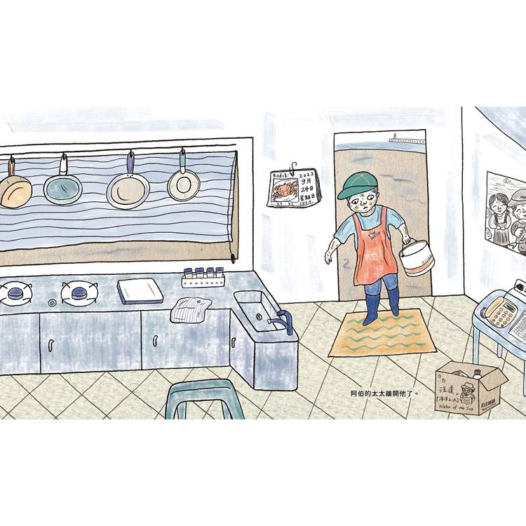 當然,這本繪本不只是講臺灣的海鮮文化,打開繪本,我們先看到了阿伯失去親人的孤單和寂寞,但是接下來,阿伯用愛、用回憶、用快鍋大火、用新鮮海鮮,把一道道料理做出來的時候,他不只是服務客人,也是在療癒自己,把每個客人都當成家人,彼此都感到了溫暖的情意。