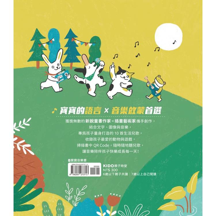 掃描書中QR Code,即可線上聆聽兒歌,在音樂中感受節奏與語韻之美;家長與孩子也能一起共讀硬頁音樂書,邊看邊聽、欣賞圖畫,從中培養美感、語言能力與生活自理的學習樂趣。