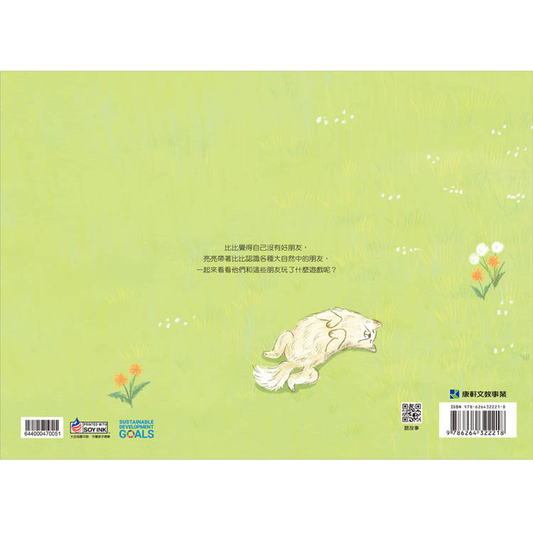 比比覺得自己沒有好朋友,亮亮帶著比比認識空氣、雲、風等各種大自然朋友,他們和大自然玩了各種遊戲,了解大自然對我們生活的影響與好處,建立感恩與愛護大自然的心,同時也認識了友情的價值。