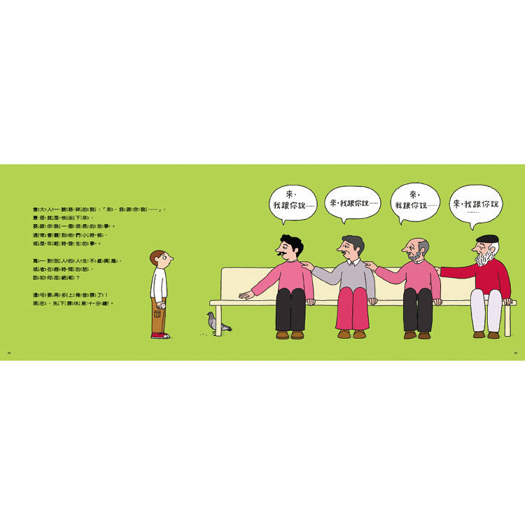 學會聽得懂,是這本書最迷人的邀請;封面上,每一個「來,我跟你說……」的插圖情境,都成了孩子自然延伸的對話練習。懷孕的媽媽,想對肚子裡的小寶寶說什麼?大野狼遇上小紅帽,會拋出什麼驚人話語?孩子可以盡情發揮,在一來一往的對話中,練習溝通與回應。