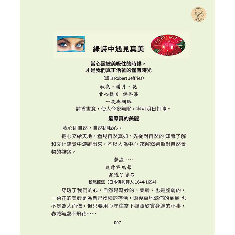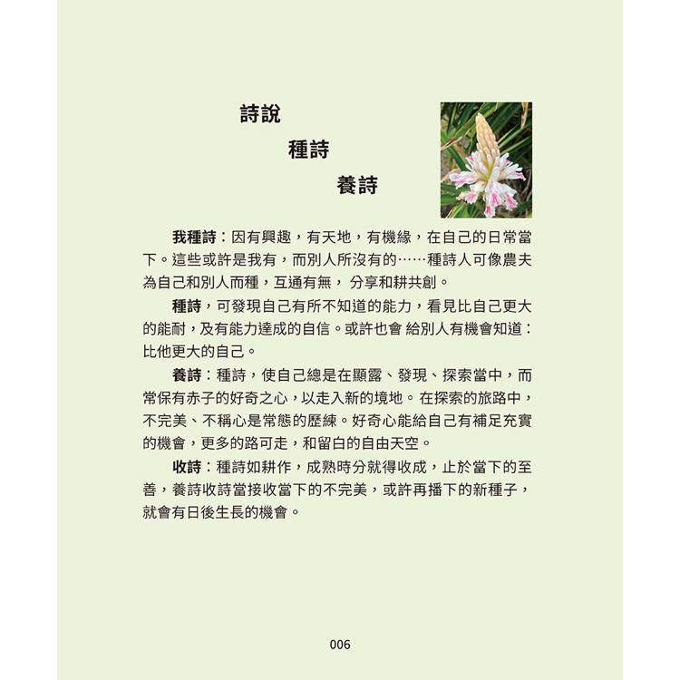 書中更詳盡的介紹了植物的專業知識,欣賞詩之外,也學到奇花異草的專業知識。