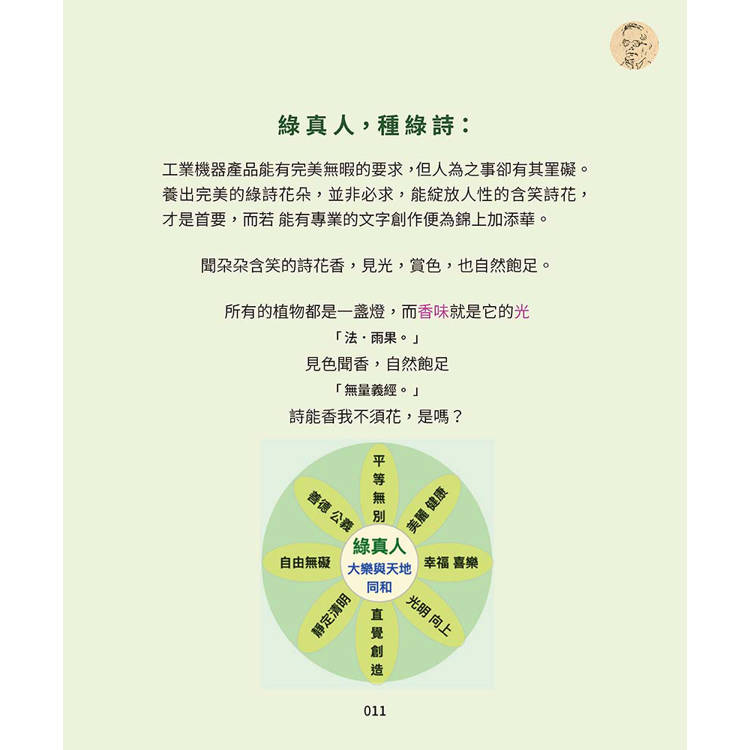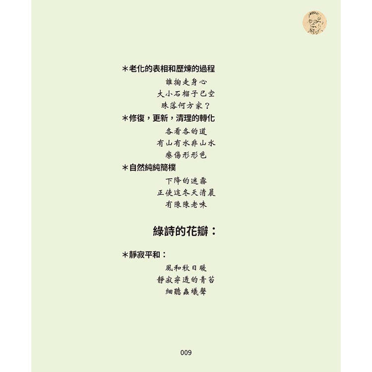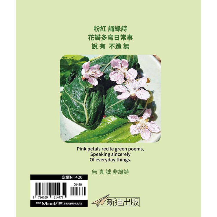 然則,⼈既立於⼤⾃然空無與萬有之中間項,既不能奔向兩端,只有認真立定⾯對,老實「墾植當下」了,誰⼜能顧及後果如何呢?這本詩攝影集中的千花百草,即萬象繽紛世界的幾片彩⾊橫切⾯,值得讀者⼀⾴⾴細細品味,或將在某圖某詩中與⽇昨走失的、⾚真的⾃⼰相遇。