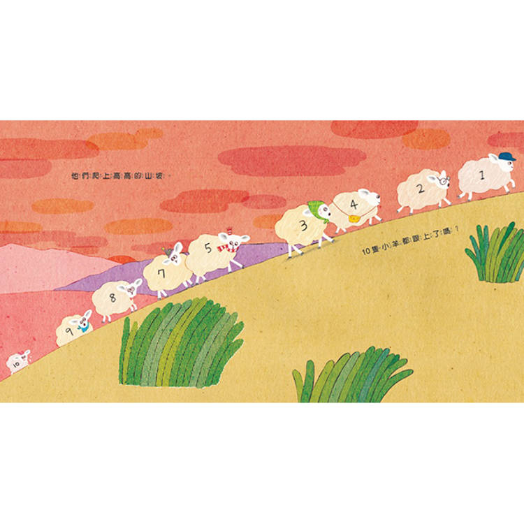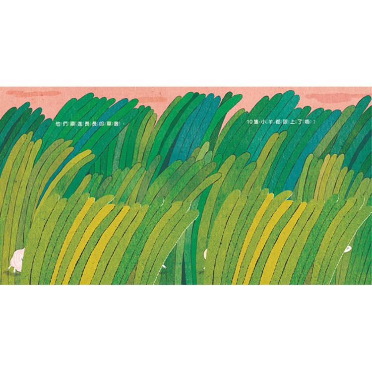 書裡藏著翻頁小機關,10隻小羊走一段路,就要數一次,10隻都跟上了嗎?翻開才知道。有時藏在高高的草叢裡,有時散落在陡峭的山坡上,有時⋯⋯每一關都不一樣,每一次翻開都有新發現。找羊的過程本身就是冒險,大人小孩都會忍不住一頁接著一頁,捨不得停下來。