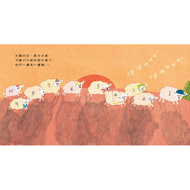 小羊回家的路上,有好多的關卡,但哥哥姊姊永遠陪伴著小羊。10隻小羊一起出發,途中跌跌撞撞,互相拉了一把又一把,最後一起到家。這本書裡的溫度,孩子能感覺得到,大人看了也會想起那些曾經等過你、也被你等過的人。
