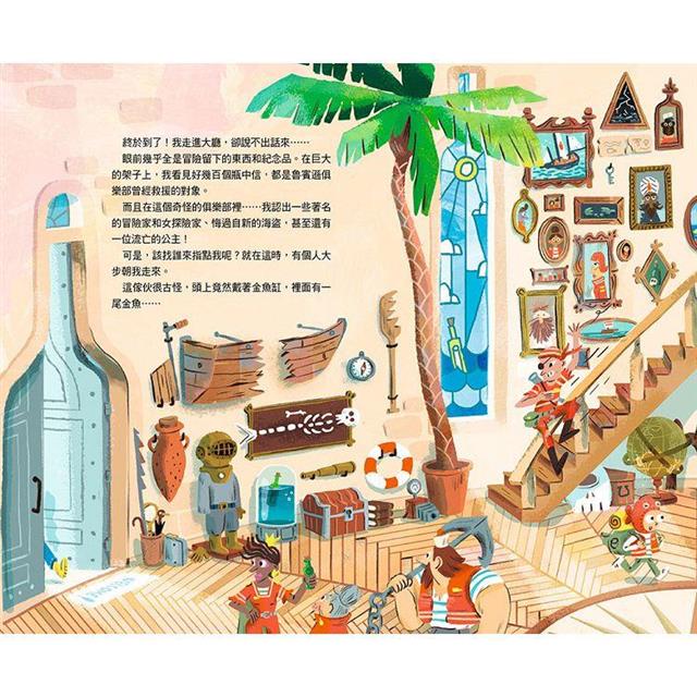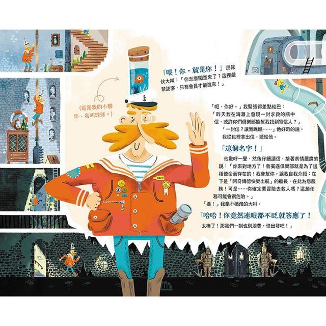 一封瓶中信,一趟營救行動,開啟了一場趣味橫生、精采絕倫且出人意表的冒險。這本書的文字如小說般意像豐富、高潮迭起,圖像卻依然保有繪本的想像和敘事力。翻開這本書,你也可以展開一場特別的閱讀冒險!──劉清彥(童書作家與兒童節目主持人)