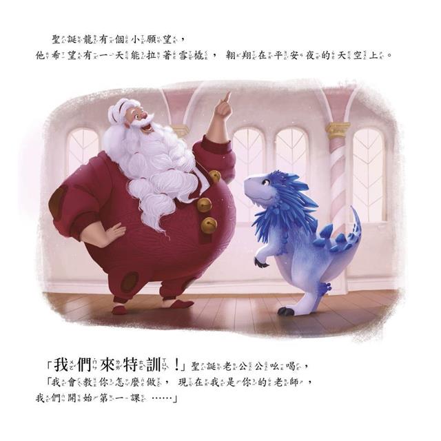聖誕龍有個夢想,他想在平安夜駕著雪橇飛翔,但是年復一年,即使聖誕老公公、小精靈和馴鹿們教他飛翔的方法,他還是飛不起來。