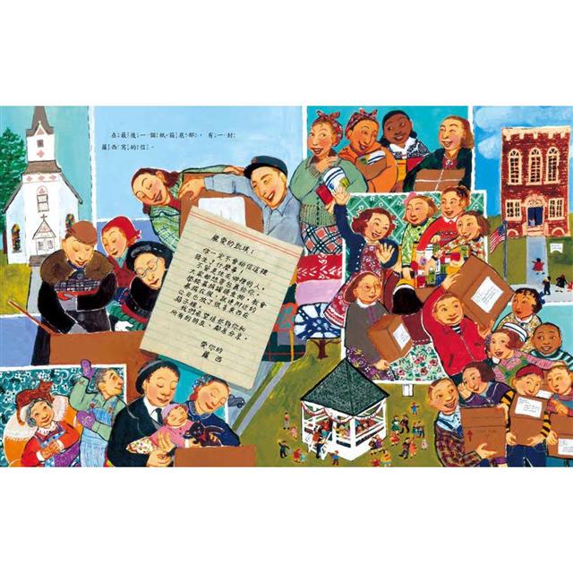 這本書的作者不愧是將歷史事件轉化為故事的高手,她利用季節更迭的意象,表現歐陸人在經過戰爭摧殘後,從充滿希望的心生欣喜,到逐漸對生活憂心忡忡的陰鬱。從遠方捎來的包裹由小至大、由少變多,溫暖和凝聚小鎮的民心,也一步步為故事推演充滿驚喜的戲劇性高潮。而第一次為圖畫書配圖的繪者,以樸素的筆觸構圖和豐富厚實的色彩,呈現故事人物生活貧乏卻心靈富裕的狀態。每個翻頁都可以看見一張張滿懷希望、不願向困難妥協的臉龐,洋溢著欣喜和驚嘆。若是將畫面前後對照,可以清楚看見那些往返大西洋兩岸、包藏著善良的和愛的書信與包裹,對兩地人民帶來的種種影響和改變,呼應了文字所要傳遞的訊息和精神。