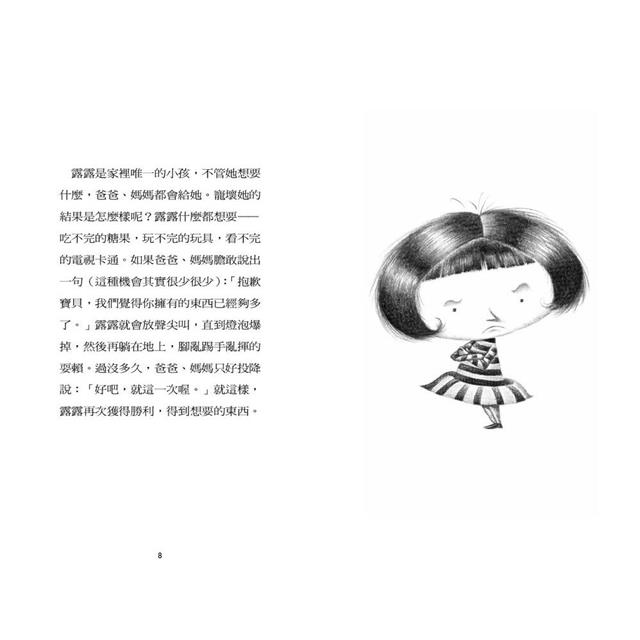 露露什麼東西都想要:吃不完的糖果,玩不完的玩具,看不完的電視卡通。如果爸媽敢說:「抱歉,寶貝,我們覺得你擁有的東西夠多了。」露露就會放聲尖叫,直到燈泡一顆顆爆掉。