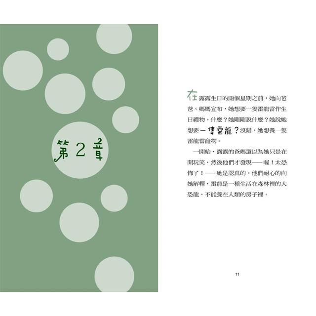 露露今年想要一隻雷龍當生日禮物。什麼?一隻雷龍?爸媽勇敢的對露露說不行,絕對不行!她卻對爸媽說:「你們兩個討厭鬼,如果你們不幫我買一隻雷龍,我就出去自己找一隻。」說完,她便氣呼呼的走進森林……。結果露露真的找到一隻雷龍,但是雷龍卻打算反過來把露露當寵物……?