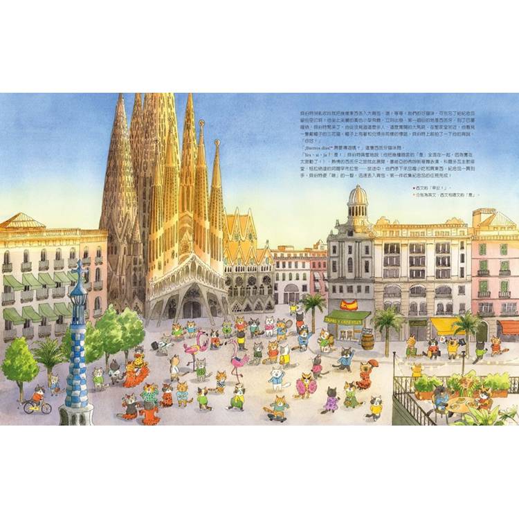 塞維亞、巴黎、倫敦、羅馬、柏林、塞內加爾、新德里、北京、東京、雪梨、里約熱內盧、墨西哥、紐約,各地的經典地標、特殊的文化典故、語言習慣、「貓」群打扮盡收眼底。