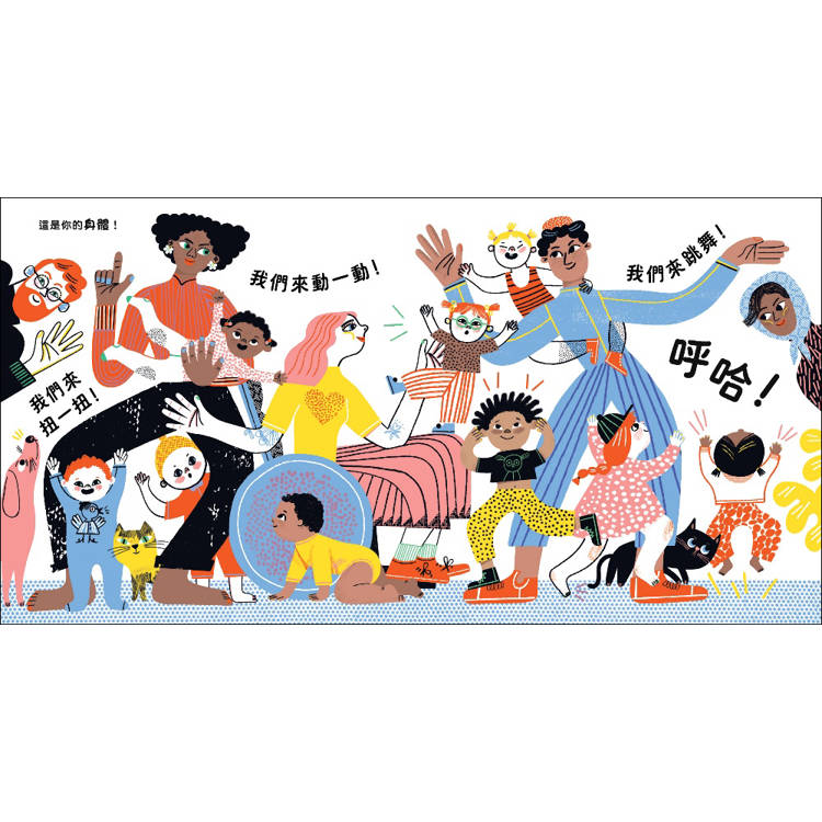 「認識自己的身體」是幼兒教育的重要課題,這本書透過好玩的遊戲陪伴幼兒探索身體,用色活潑鮮明,人物表情生動,服裝和飾品的搭配很有美感,讀起來歡快有趣。我很喜歡!──恩恩老師.幼兒園