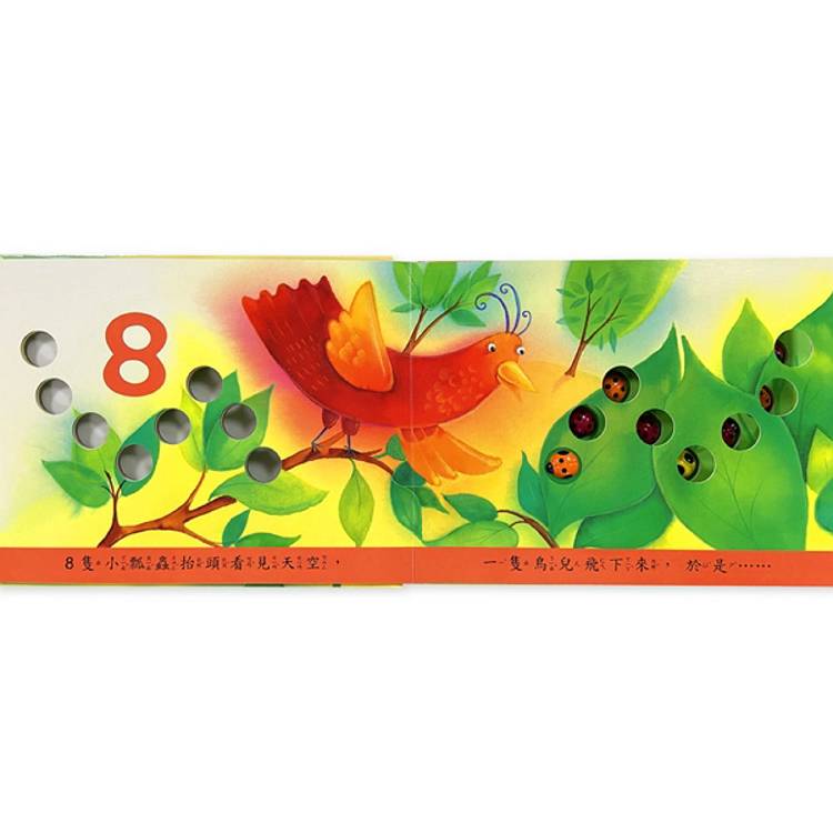 •穿插交互挖洞設計,讓孩子可以動手觸摸紋理瓢蟲。
