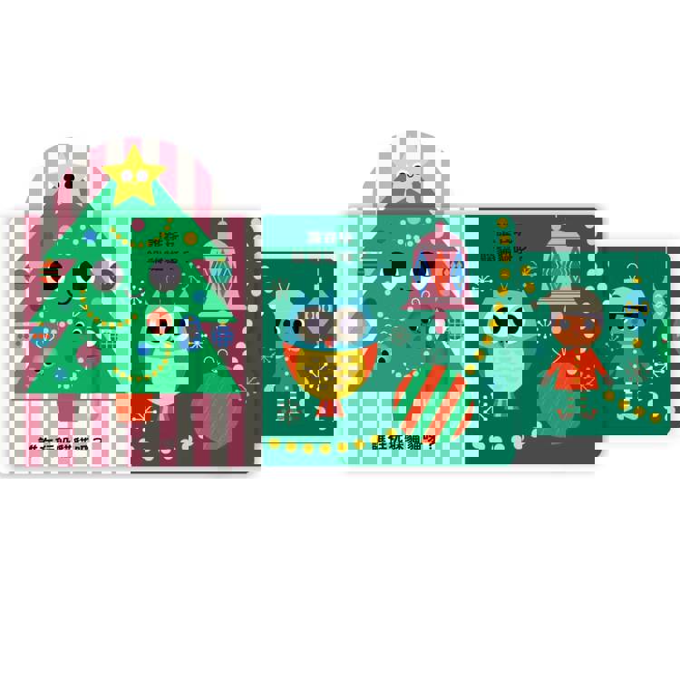 關鍵字:操作書、滑頁書、拉頁書、聖誕節、聖誕樹、聖誕老公公、蠟燭、禮物、雪橇、聖誕襪、麋鹿、躲迷藏、捉迷藏、躲貓貓、物體恆存、自我概念