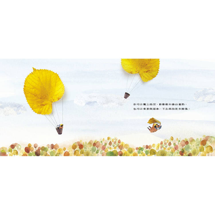還把美洲椴的落葉變成飄向高空的熱氣球……