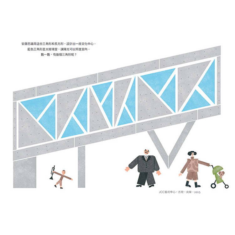 「本書邀請讀者參加一場巨型七巧板遊戲,靈感來自著名日本建築師——安藤忠雄的作品。作者蓋雅・史泰拉(Gaia Stella)以對形狀組合遊戲的熱愛聞名,但在這本書中,她的想像力受到建築嚴謹性所限制。那麼,該如何讓年幼的讀者感受到這些灰色混凝土建築中所蘊含的詩意與人文關懷呢?也許透過一次重新設計的七巧板遊戲,就是答案。