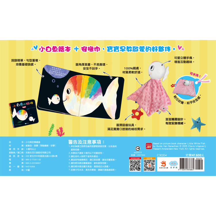 小白魚找媽咪【安撫禮盒】精裝厚頁書+安撫巾玩偶