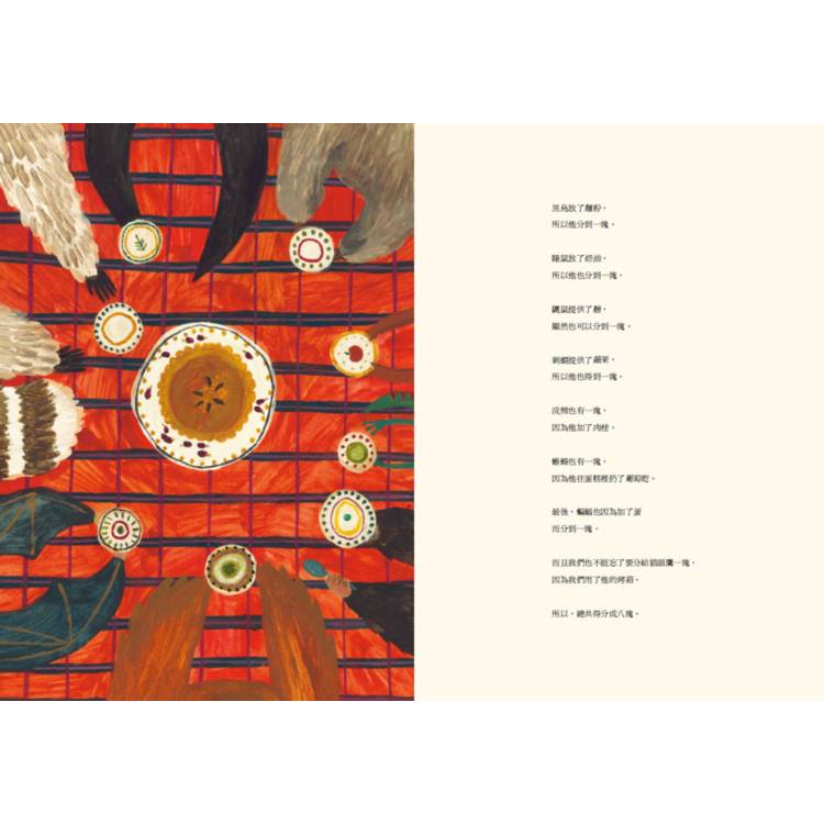 ◆作者以【做正確的事是好的,即使有時候這並不容易】為本書的中心思想,故事簡單卻寓意深遠。故事最後,動物們一起做出來的蛋糕要切成八塊還是九塊,親子共讀時可以一起討論。