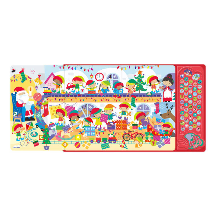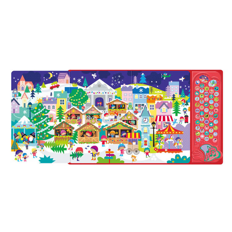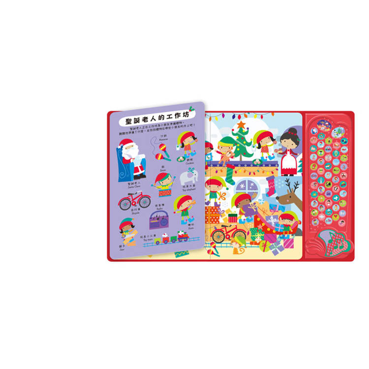 本書不只是音效書,也結合了「找找看」的遊戲!先觀察每個主題的10個聖誕節元素,再打開折頁,從精緻又豐富的各個場景中,找出這10個聖誕元素,不只培養小朋友的專注力、觀察力、耐心,還能學習解決問題的能力,讓孩子邊聽邊玩,樂在其中!